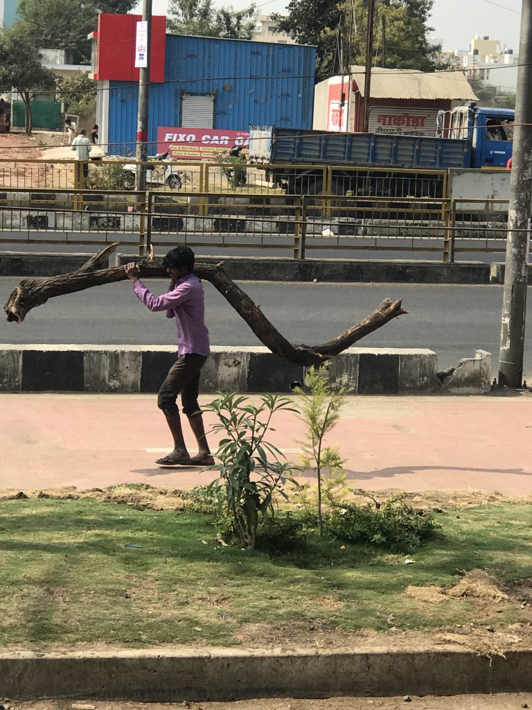So manch einer erinnert sich vielleicht noch an einen der größten Chemieunfälle in der Geschichte unseres Planeten. Ein Tank mit Düngemitteln explodierte, weil der amerikanische Hersteller aus Kostengründen Fachpersonal entlassen und Wartungsarbeiten ausgelassen hat. In der Folge starben 30.000 Menschen und mehrere 100.000 erlitten Verätzungen an Haut und Lunge, unter denen sie teilweise noch heute leiden. Getroffen hatte es damals wie so oft die Ärmsten der Armen, denn die Giftgaswolke, die bei der Explosion entstand, wurde vom Wind direkt auf die Slums von Bhopal zugetrieben. Bis heute liegt das Gift in den kontaminierten Böden, weil niemand die Kosten der Entsorgung übernehmen will. Bis heute werden missgebildete Kinder geboren – von Entschädigung keine Rede. Von alldem ist jedoch im Zentrum Bhopals nicht viel zu erkennen. Der Verkehr ist für Indien eher mäßig und die Luft erstaunlich klar. Vielleicht liegt es daran, dass Bhopal zwischen großen Seen angesiedelt ist. Es gibt also genug Kaltluftschleusen, die in vielen anderen indischen Städten schlichtweg zugebaut sind. Ansonsten unterscheidet sich Bhopal nicht viel von anderen Großstädten. Es ist laut und das permanente Hupen der Autos, Roller und Thuk-Thuks (Motor-Rhikschah) allgegenwärtig. Eine Kakophonie, die so typisch für Indien ist. :